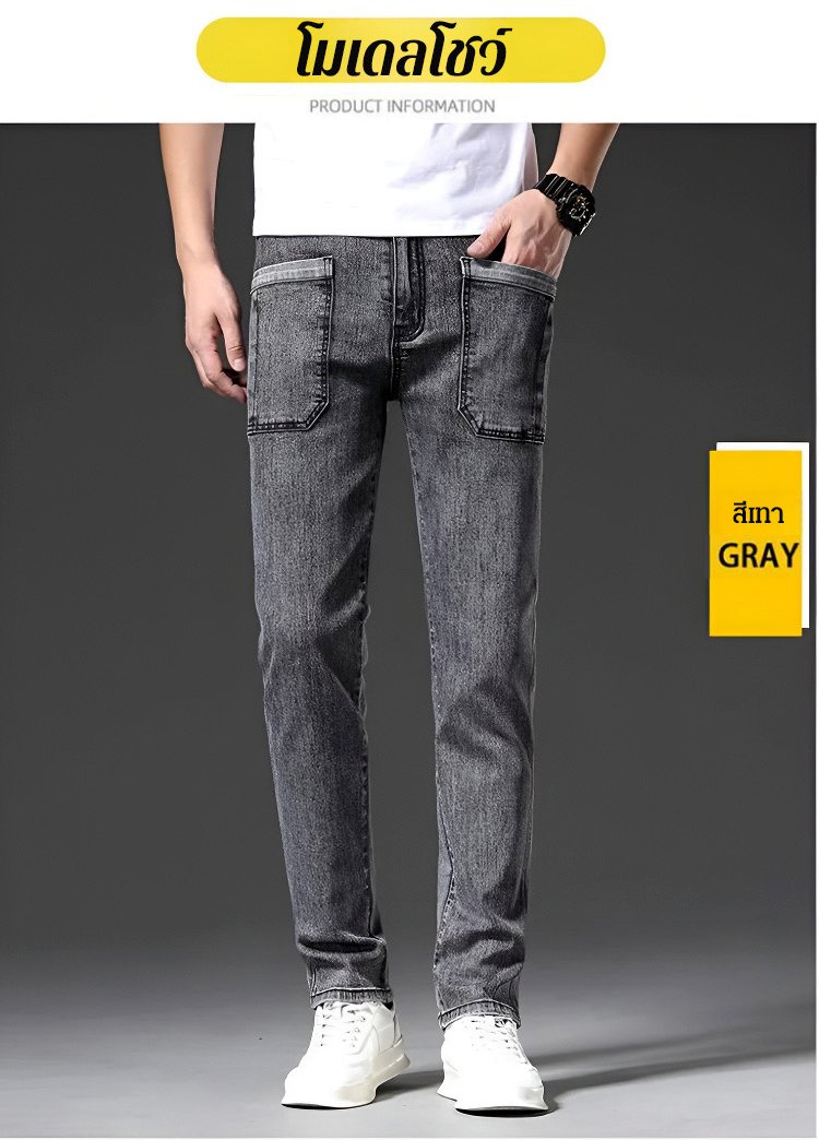กางเกงยีนส์ทูโทน กระเป๋าใหญ่ ยืดหยุ่นสูง
